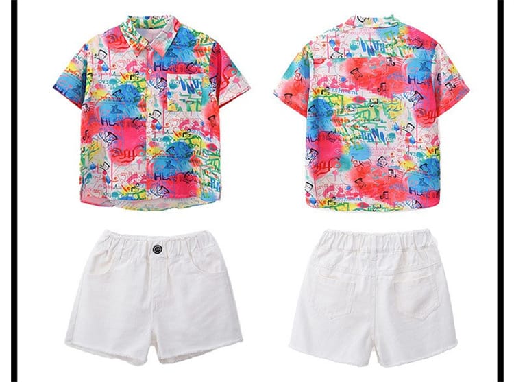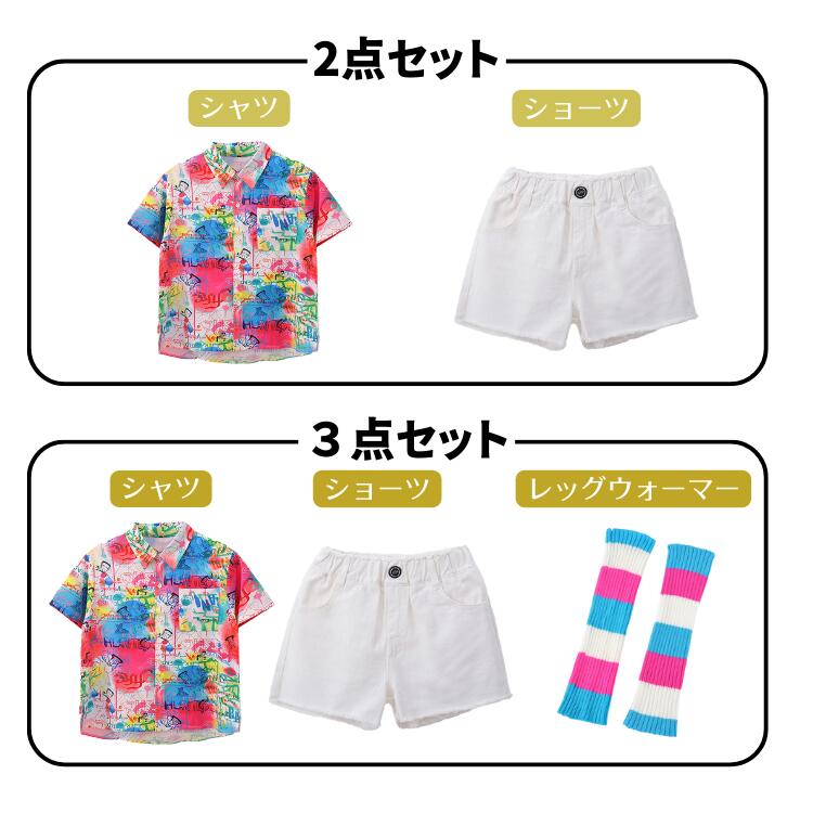 韓国 ダンス 衣装 セットアップ 柄シャツ 派手 子供服 キッズ ヒップホップ 女の子 シャツ レッグウォーマー ショーツ ヒップホップ キッズダンス衣装 セットアップ ストリート ダンスウェア 子供