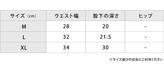 サイズ(cm) M:ウエスト幅 28 / 股下の深さ 20