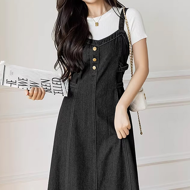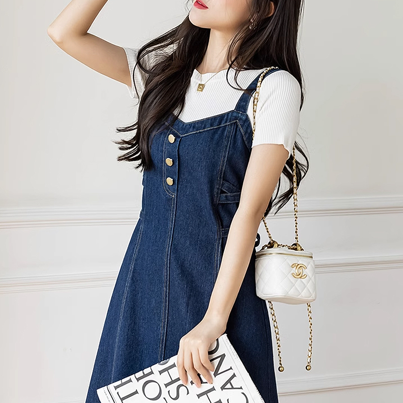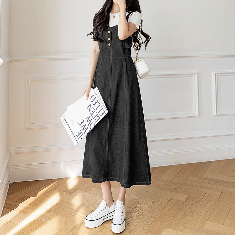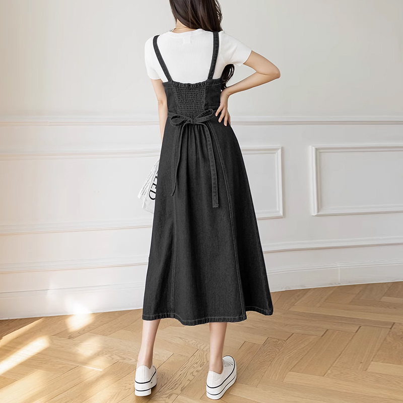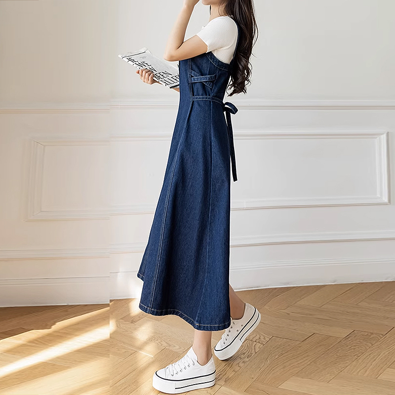 キャミ ワンピース デニム レディース ワンピース ジャンパースカート キャミワンピ ロングワンピース レディース デニムワンピース キャミワンピース ノースリーブ オールインワン ミモレ ワンピ リボン デニムキャミ ジャンスカ 金ボタン 重ね着 春 夏 秋