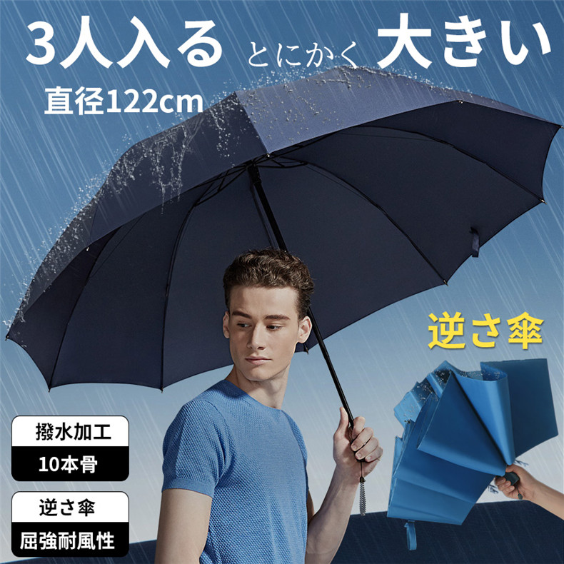 逆さ傘 濡れにくい 便利 男女兼用メンズ レディース 10本骨 大きい 3人 折りたたみ日傘 遮光 軽量 折れない 風に強い 日