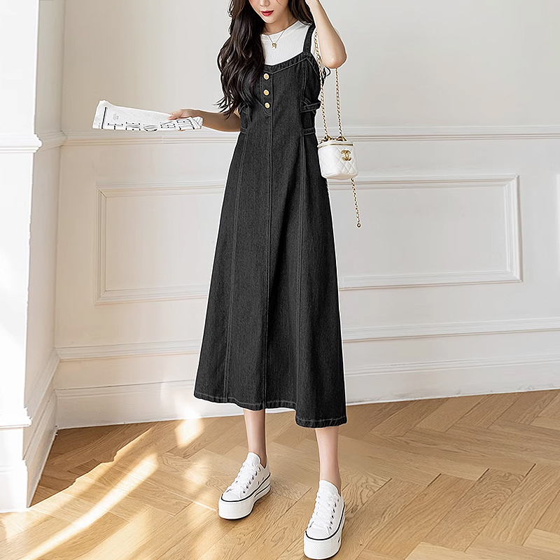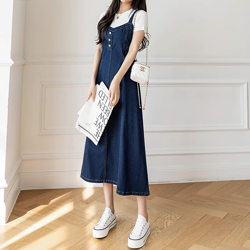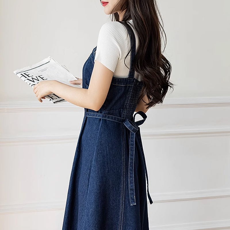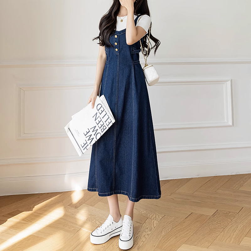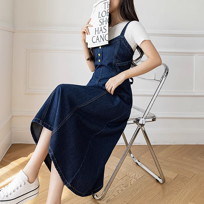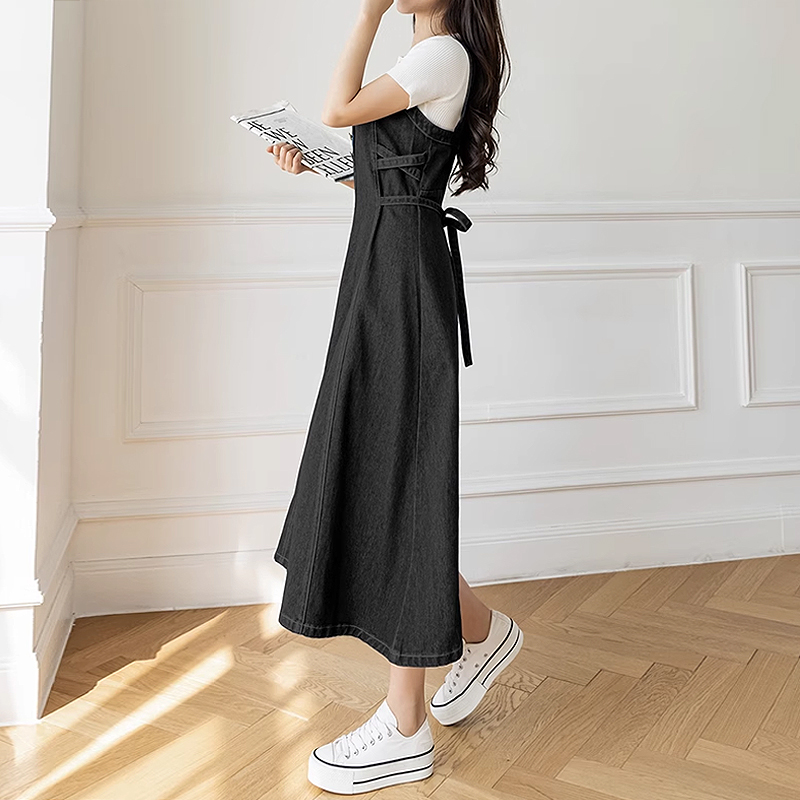 キャミ ワンピース デニム レディース ワンピース ジャンパースカート キャミワンピ ロングワンピース レディース デニムワンピース キャミワンピース ノースリーブ オールインワン ミモレ ワンピ リボン デニムキャミ ジャンスカ 金ボタン 重ね着 春 夏 秋