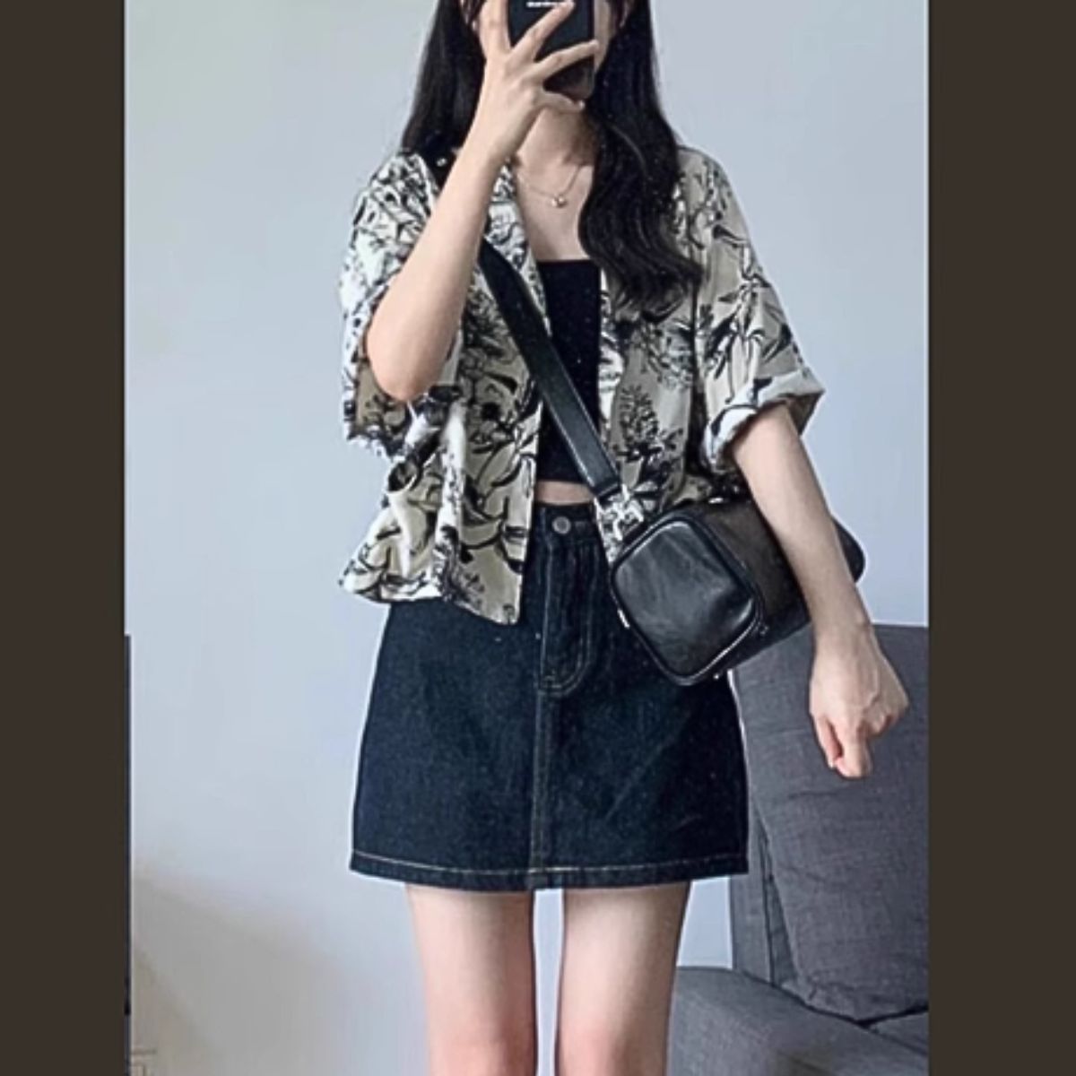 カジュアル シャツ 半袖 柄 総柄 花柄 ショート丈 短丈 高級感 夏 羽織り レディース シンプル モノトーン 韓国ファッション きれいめ カジュアル 大人