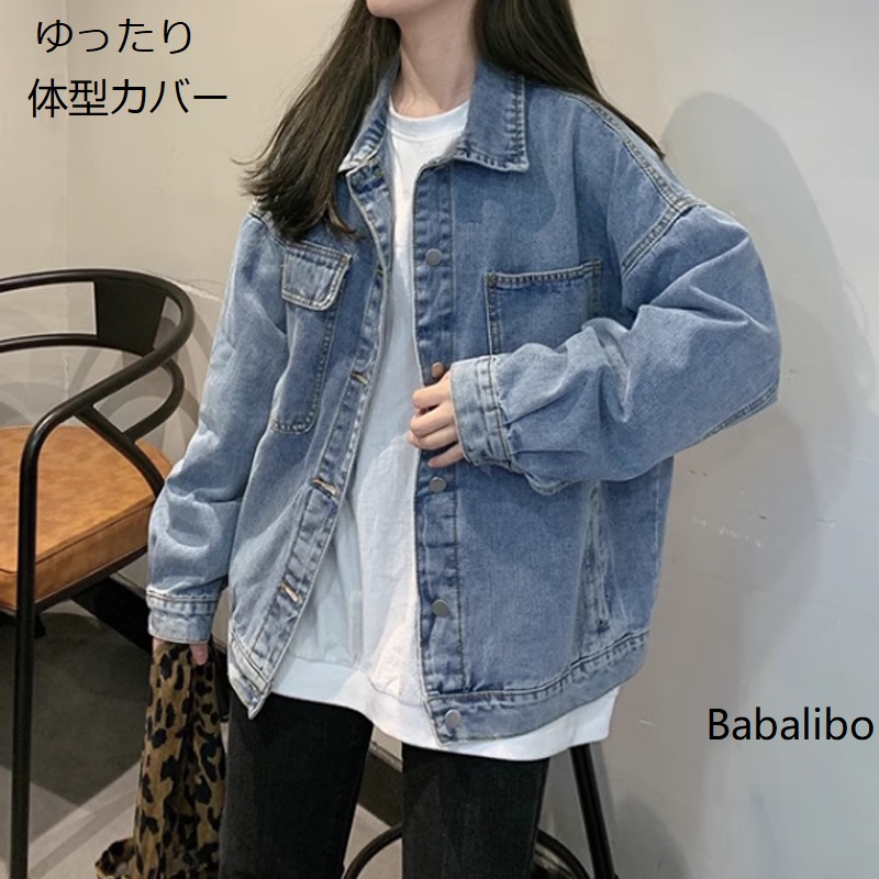 ゆったり オーバーサイズ デニムジャケット 体型カバー ジャンパー 長め 長袖 ボリューム袖 上着 羽織り カジュアル 大人 可愛い
