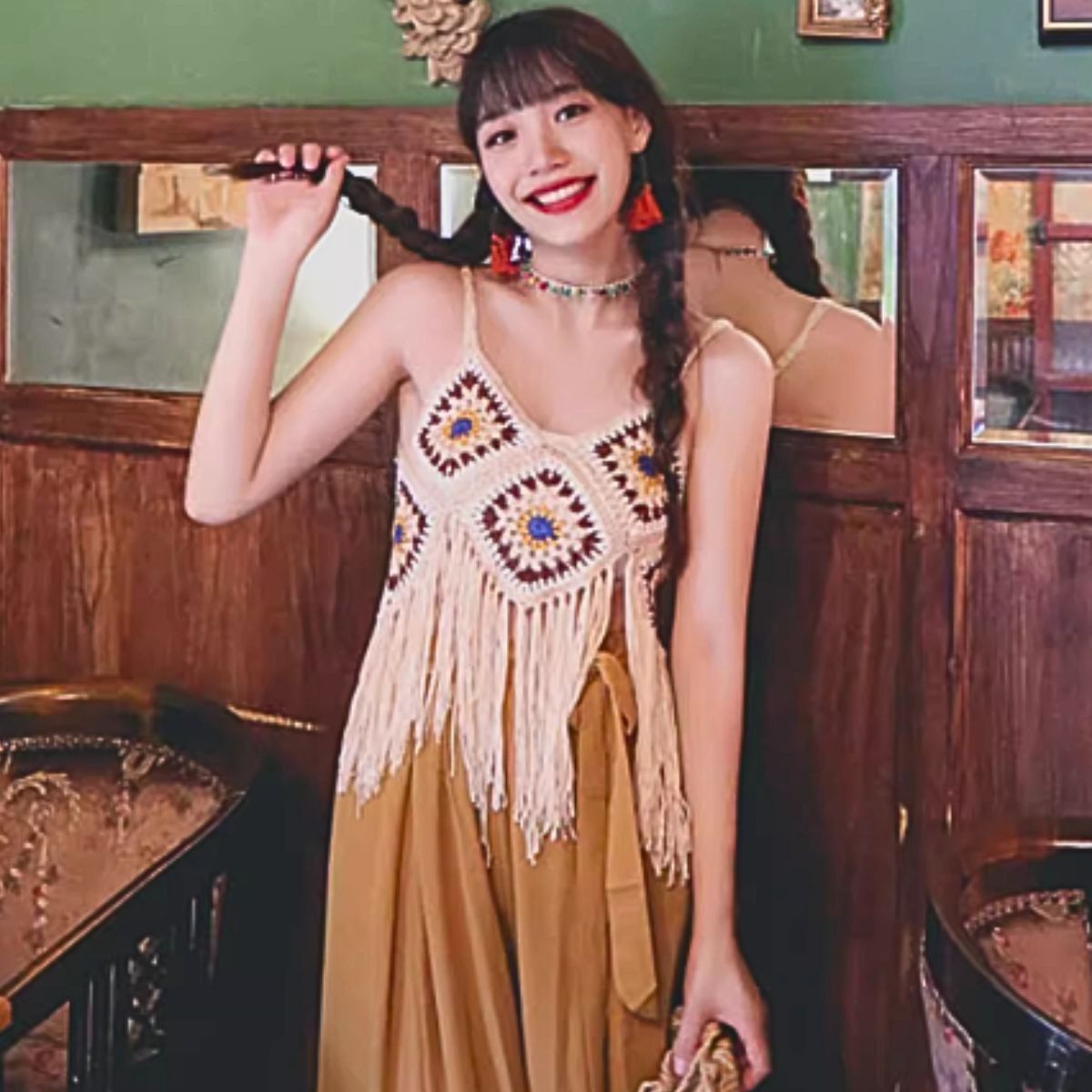 キャミソール 上品 クロシェ ビスチェ キャミソール ニット かぎ編み ボヘミアン レディース 韓国 ファッション フリンジ レトロ 肌見せ 重ね着 カラフル 大人 春夏