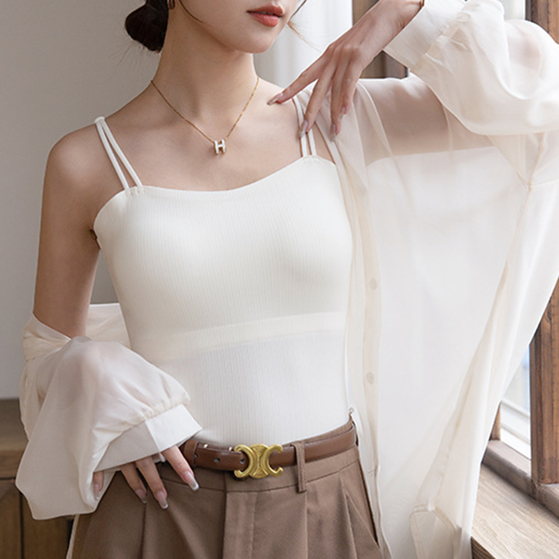 チラ見え 防止 ブラトップ ダブルストラップカップ付きキャミソール 肌触り 調整可能
