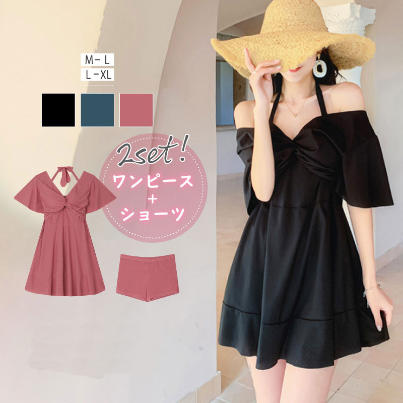 大人 水着 ワンピース 体型カバー 2way オフショル 露出控えめ ワンピース水着 スカート vネック ホルターネック オフショルダー 半袖 袖あり 太もも お腹 カバー 隠し 二の腕 リゾート 可愛い オシャレ ママ水着 夏 韓国