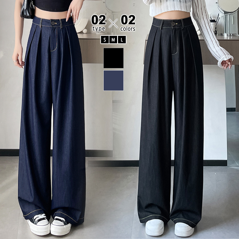 ワイドパンツ レディース 裾直し ワイド デニムパンツ アンクル丈 レギュラー丈 S M Lレディースファッション ボトムス パンツ 体型カバー 太もも カバー 春夏 春 夏