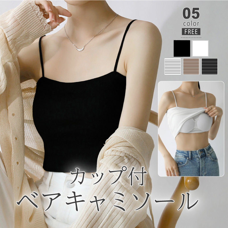 キャミソール カップ付き 背中 ブラトップ スパゲッティキャミソール ショート丈 レディース インナー キャミ カップ付きキャミソール ノンワイヤー カップ付きインナー ボーダー 下着 パッド付き 盛れる